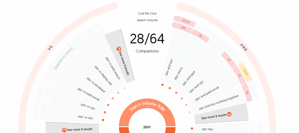This tool looks a little different, but the intent is the same: revealing search insights to help you refine the keywords you target. When you enter a term the site generates a report showing all sorts of searches around the term, including associated questions, prepositions, comparisons and more. The idea is to broaden the types of terms and search intent you’re taking into account when building your lists.